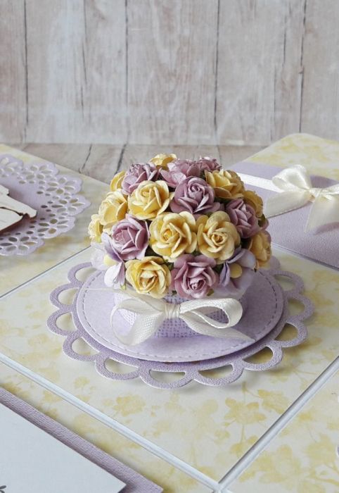 Elegancka kartka z okazji ślubu w formie oryginalnego pudełka w delikatnej pastelowej kolorystyce: