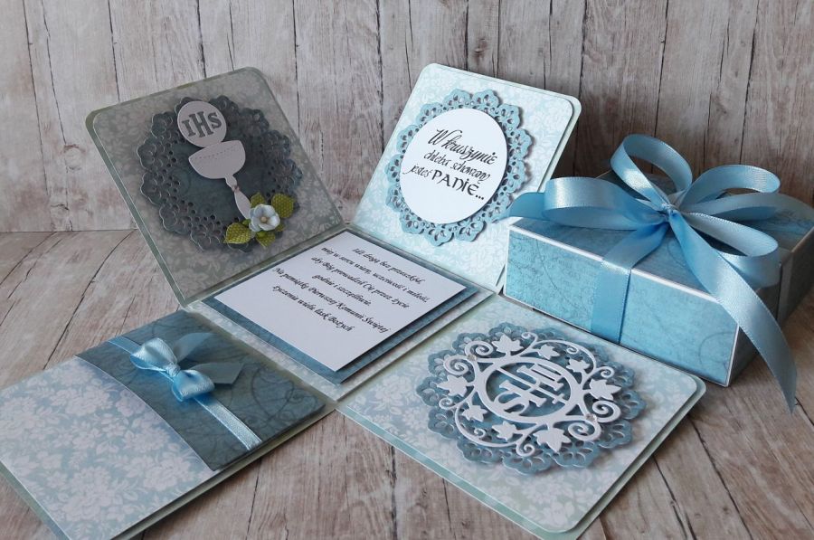 Pamiątka Pierwszej Komunii Świętej w formie oryginalnego pudełka.