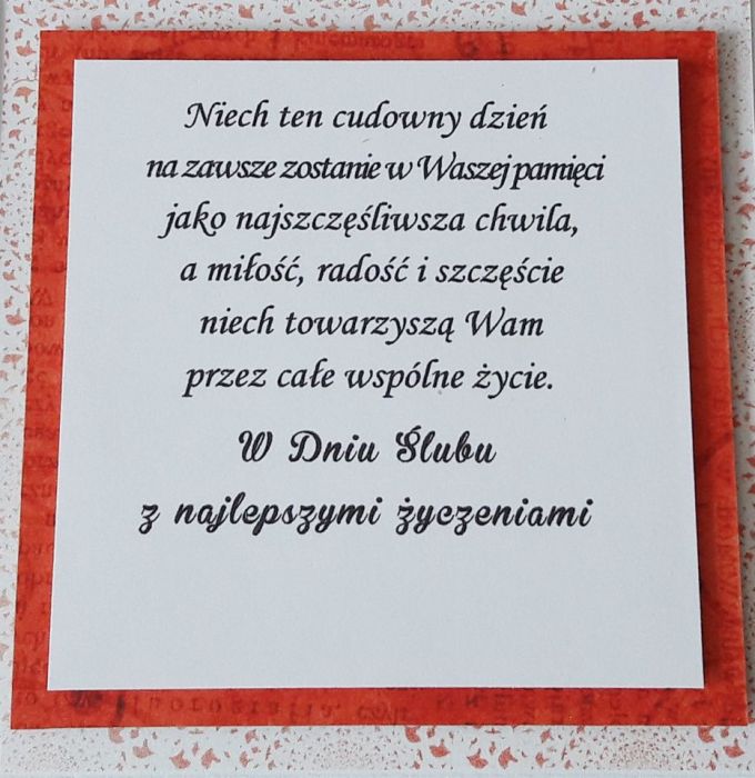 Dziękuję za szybkie i staranne wykonanie zamówienia.Jestem pod wrażeniem. Zarówno kartka jak i pudełko jest przepiękne. Nie raz skorzystam z usług Pani Justyny. Polecam