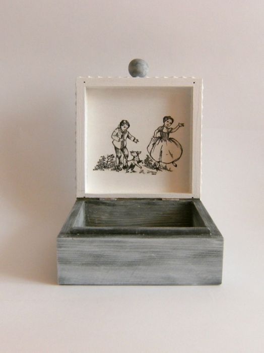 Drewniane pudełko na biżuterię zdobione metodą decoupage.