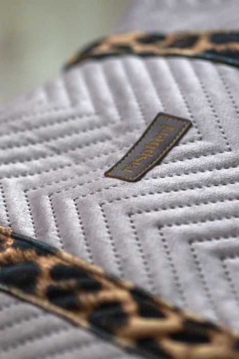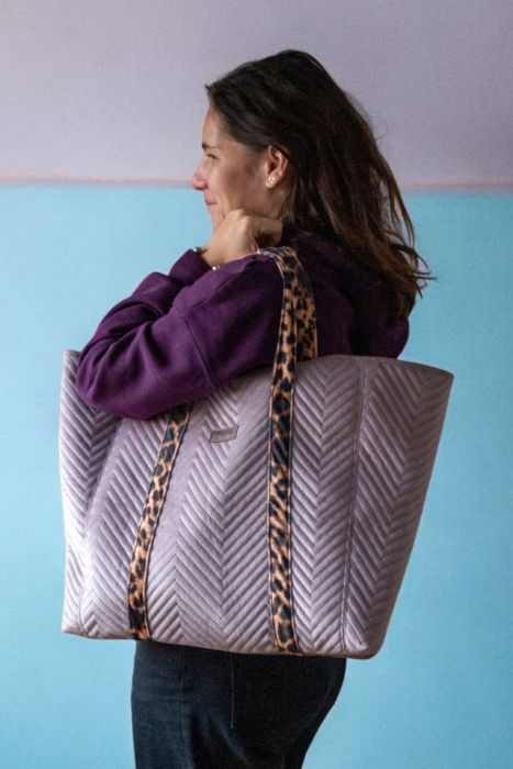 Duża torba typu shopperka w kolorze pudroworóżowym wykonana z pikowanego weluru. Pasy z weluru w panterkę.