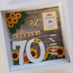 Ramka z okazji urodzin 30,40,50,60... (dowolne urodziny) z motywem słoneczników, będzie idealnym prezentem, który można powiesić lub postawić.