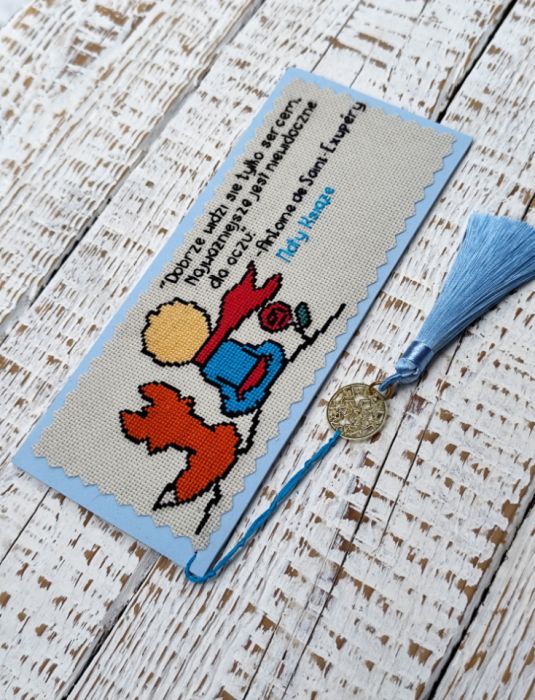 Zadaj pytanie dotyczące produktu: Ręcznie haftowana zakładka Mały Książę z cytatem.