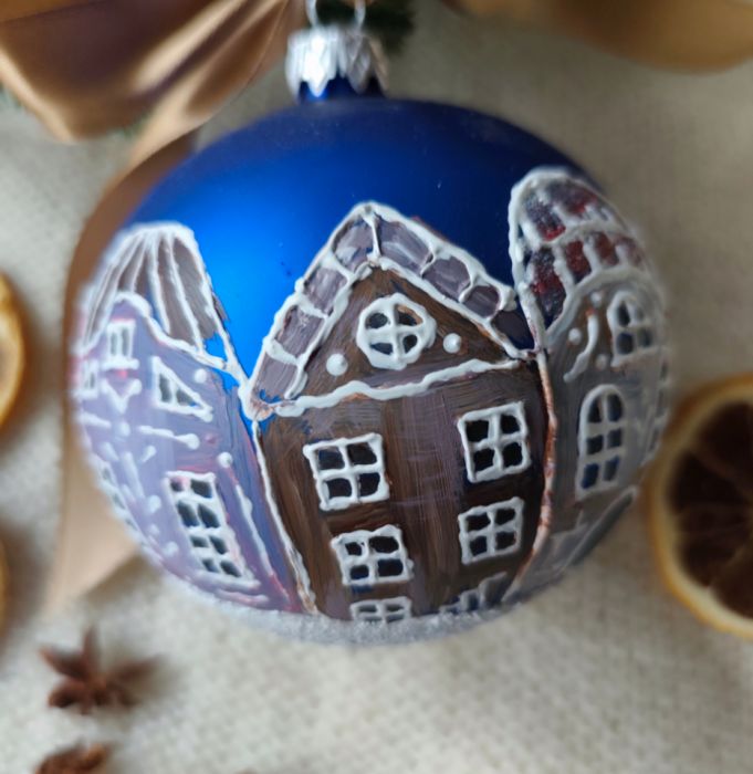Zadaj pytanie dotyczące produktu: Ręcznie malowana bombka zimowe miasteczko, 10 cm