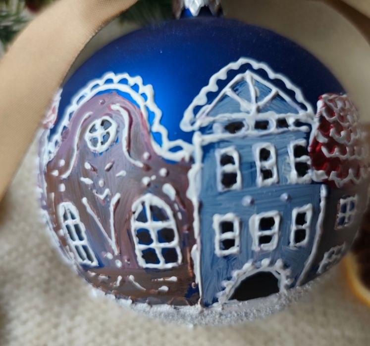 Ręcznie malowana bombka "Zimowe Miasteczko" – kamieniczki z brokatem