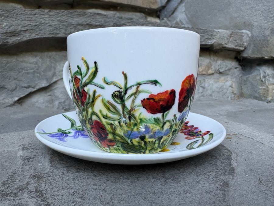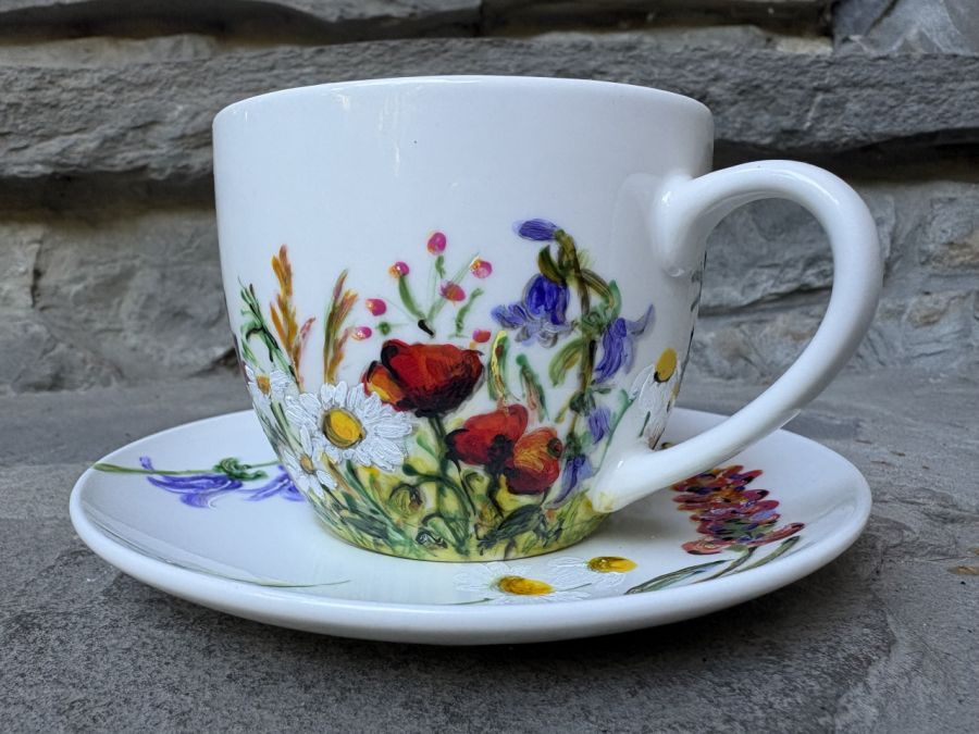 Zadaj pytanie dotyczące produktu: Ręcznie malowana porcelanowa filiżanka Kwiaty na łące