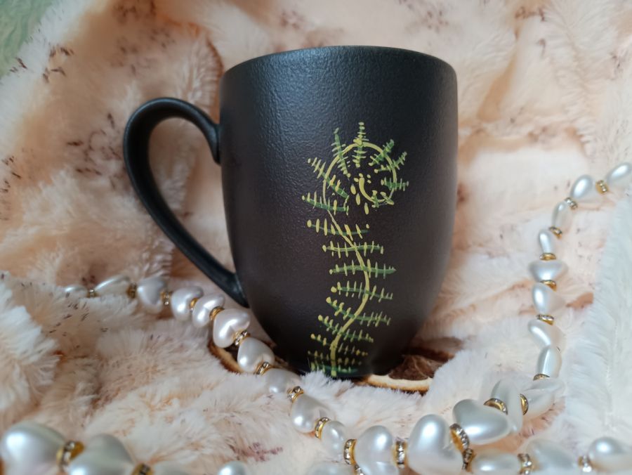 Kubek malowany wiele godzin z wielką troską o wszelkie szczegóły z miłości do natury, z miłości do tego co piękne i ulotne..
