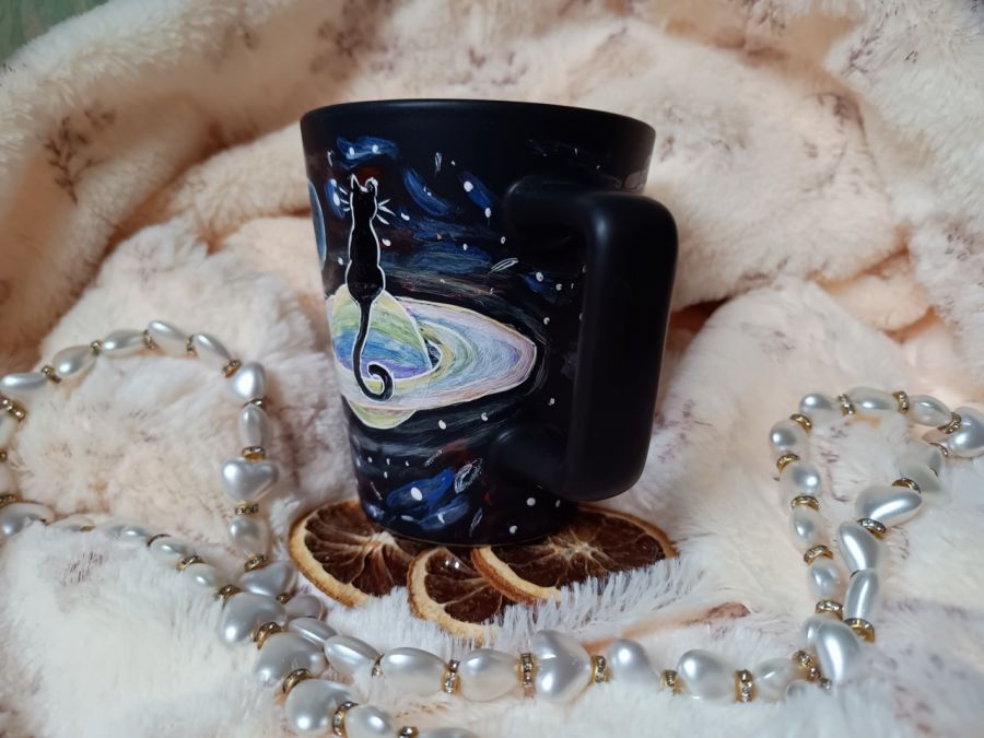 Zadaj pytanie dotyczące produktu: Ręcznie malowane kosmiczne koty kubek 300 ml.