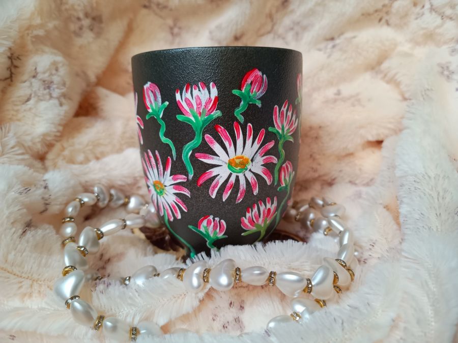 Kubek malowany wiele godzin z wielką troską o wszelkie szczegóły z miłości do natury, z miłości do tego co piękne i ulotne..