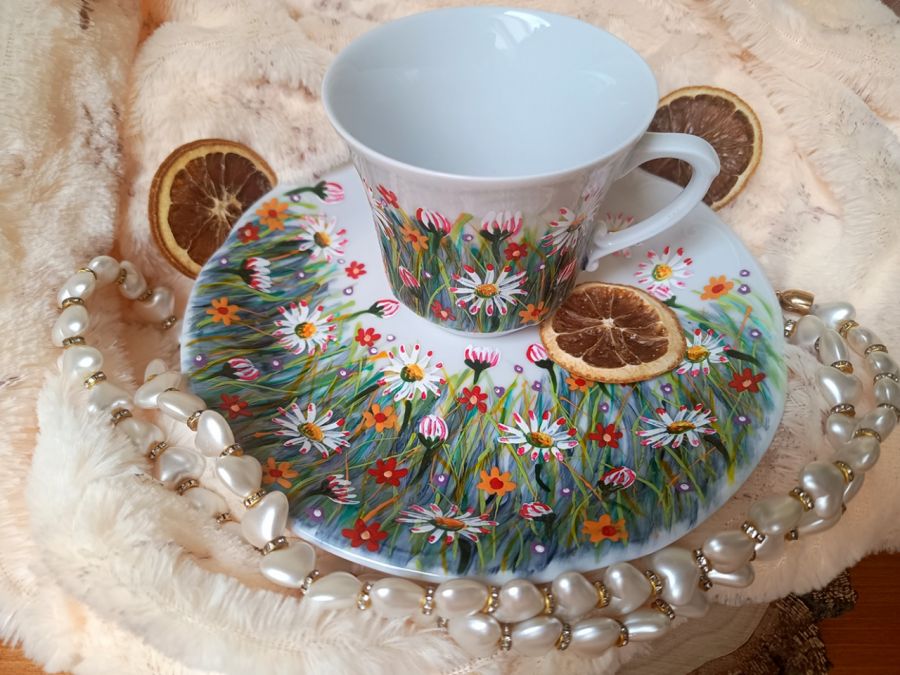 Zadaj pytanie dotyczące produktu: Ręcznie malowany komplet stokrotki na łące 250 ml