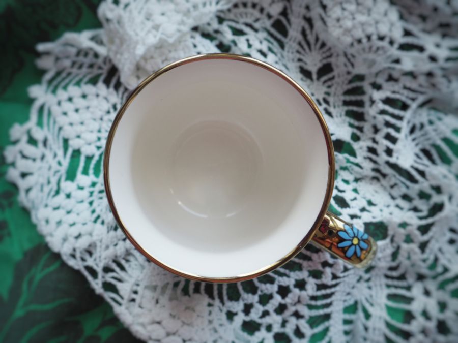 Wzór wykonany został przy użyciu nietoksycznych farb do porcelany, jest wodoodporny - naczynie może być myte ręcznie, bez użycia ostrych narzędzi.