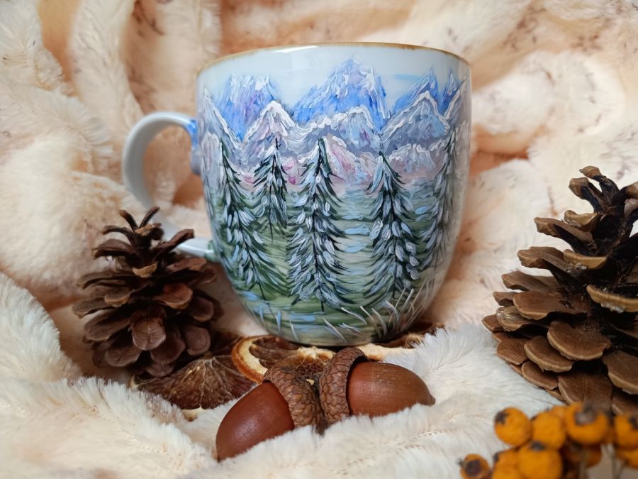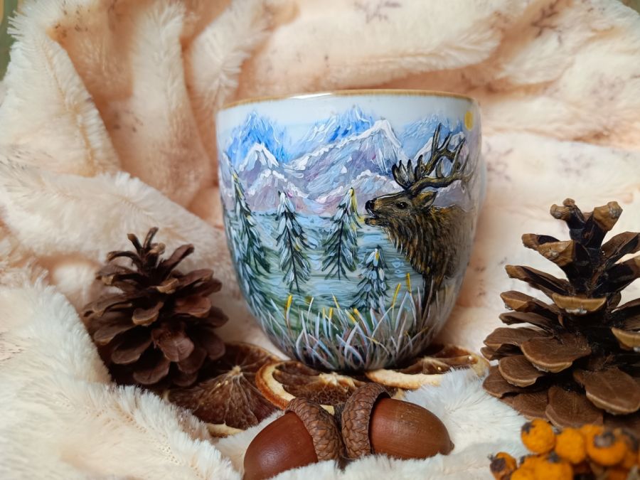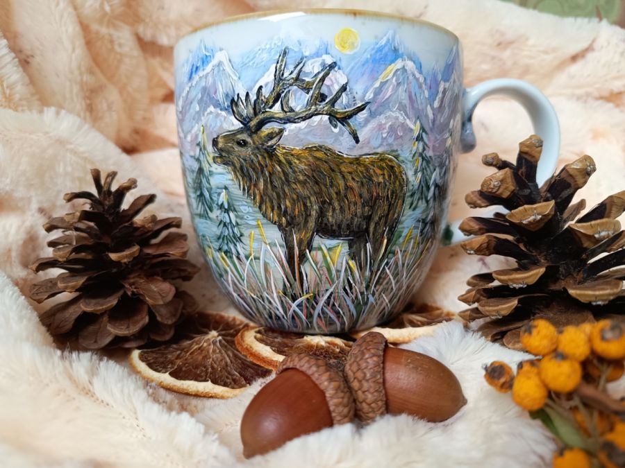 Zadaj pytanie dotyczące produktu: Ręcznie malowany kubek jeleń górski pejzaż 480 ml