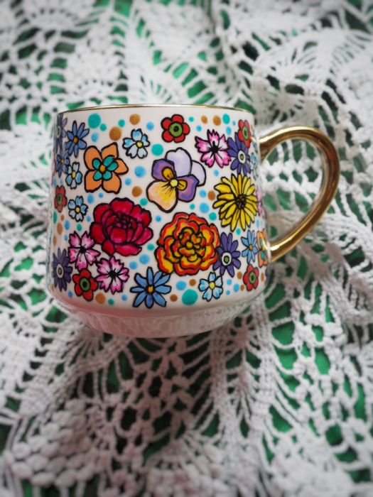 Zadaj pytanie dotyczące produktu: Ręcznie malowany kubek w kwiaty Super MAMA