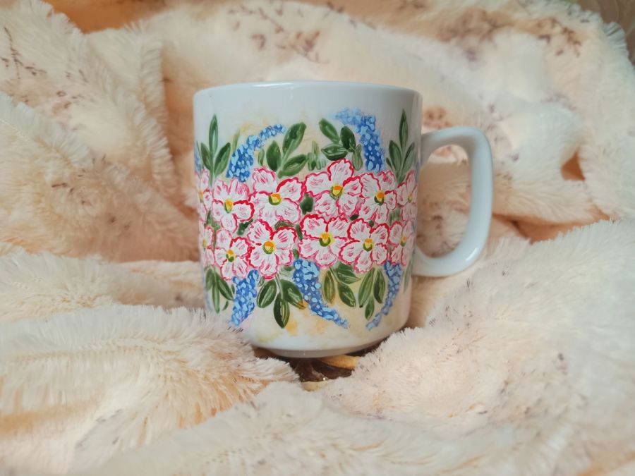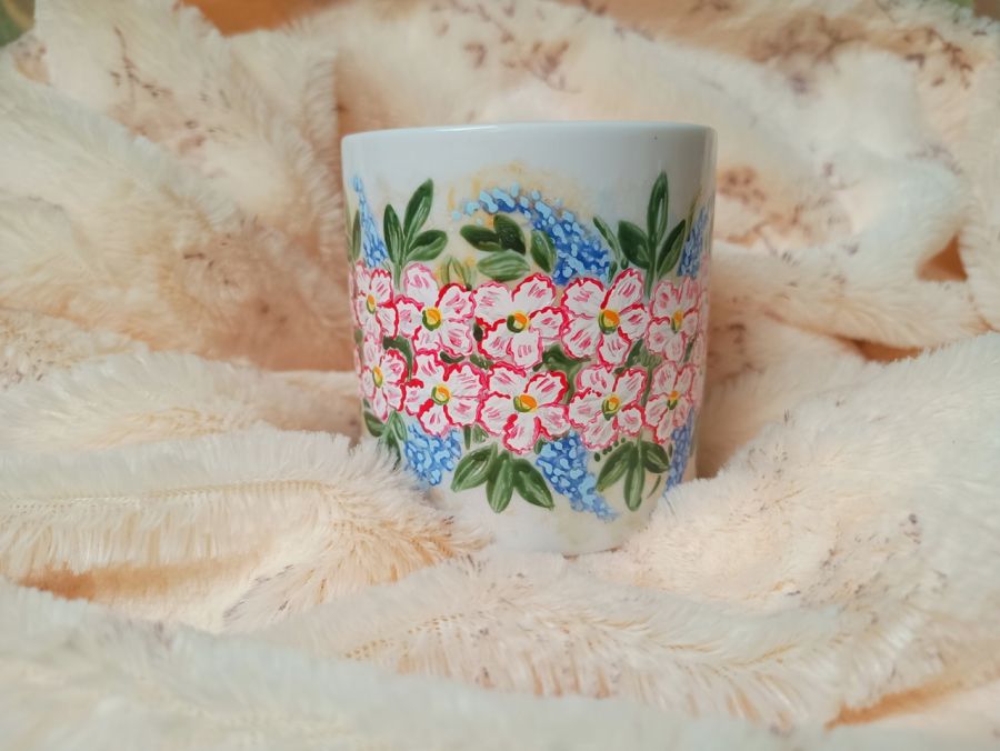 Kubek malowany wiele godzin z wielką troską o wszelkie szczegóły z miłości do natury, z miłości do tego co piękne i ulotne..