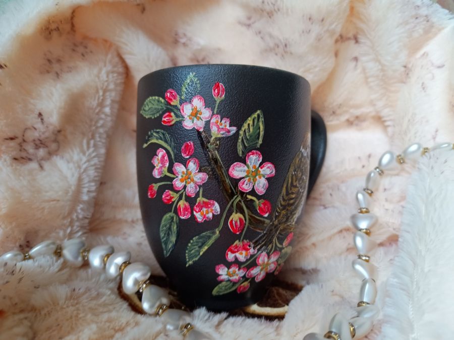 Kubek malowany wiele godzin z wielką troską o wszelkie szczegóły z miłości do natury, z miłości do tego co piękne i ulotne..