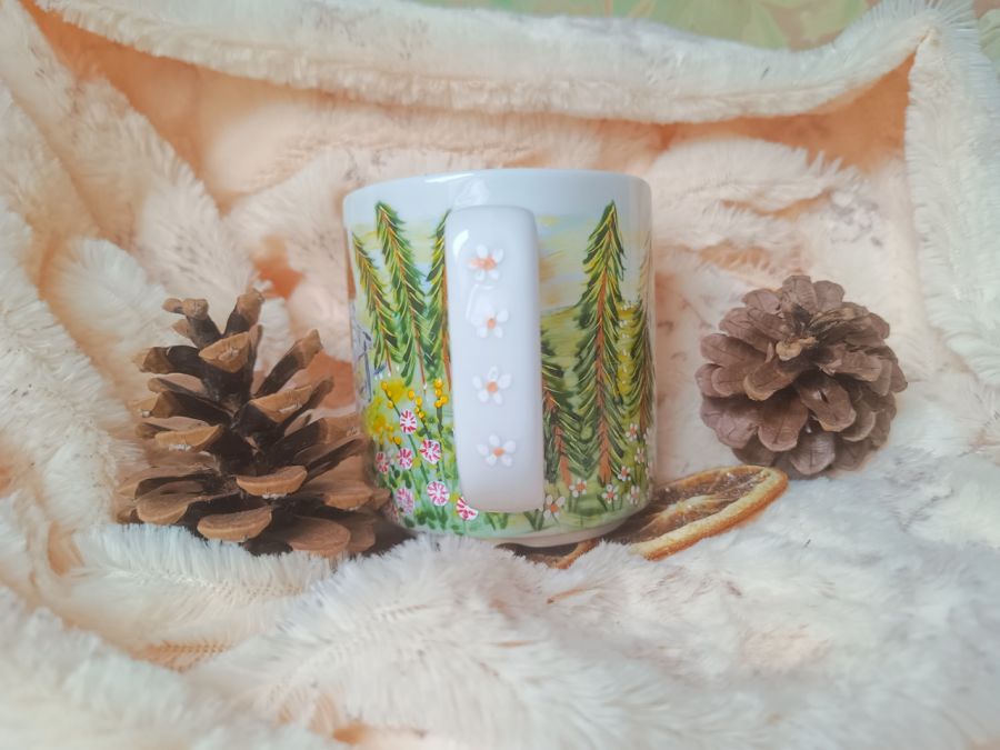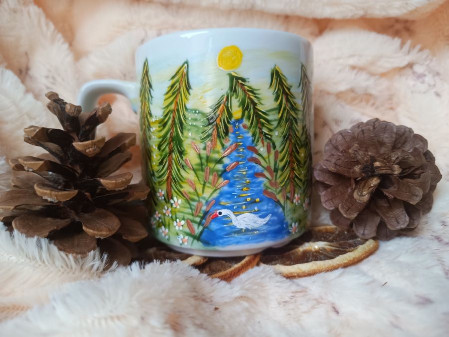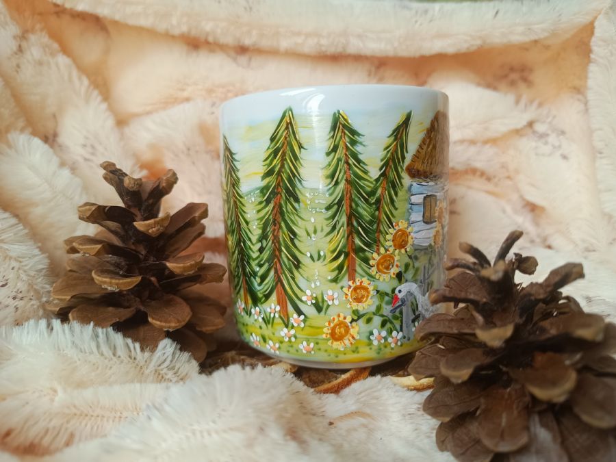 Kubek malowany wiele godzin z wielką troską o wszelkie szczegóły z miłości do natury, z miłości do tego co piękne i ulotne..