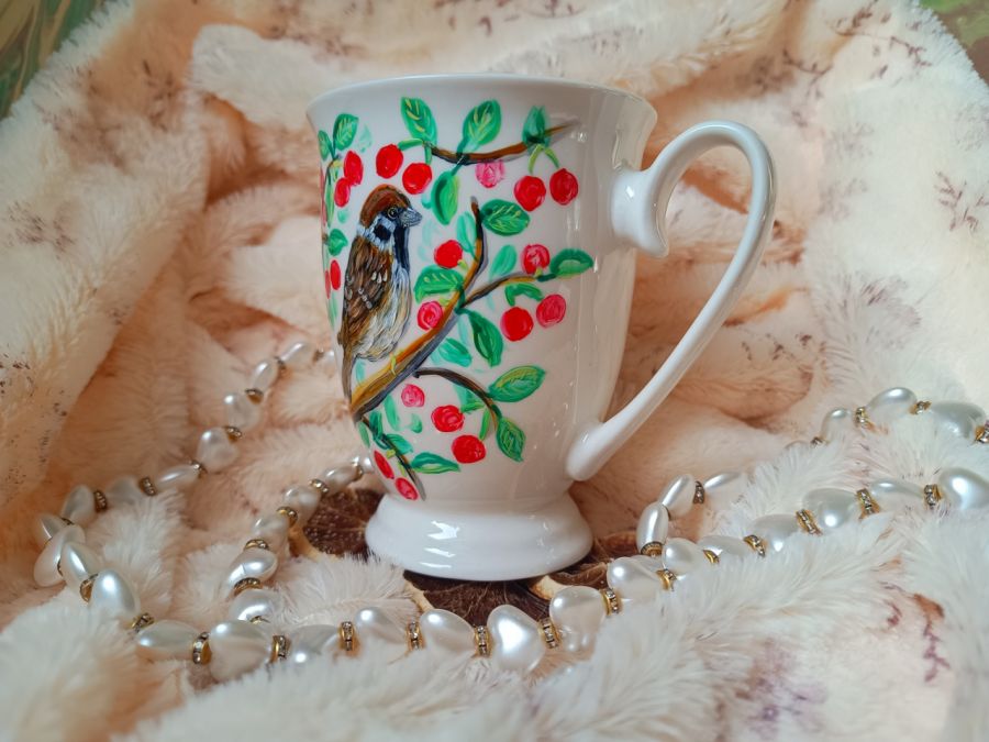 Kubek malowany wiele godzin z wielką troską o wszelkie szczegóły z miłości do natury, z miłości do tego co piękne i ulotne..