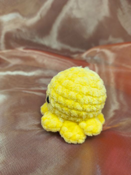 Urocza meduza amigurumi wykonana ręcznie z miękkiej, pluszowej włóczki. Maskotka jest przyjemna w dotyku, starannie wykończona i posiada bezpieczne oczka oraz haftowany uśmiech, który nadaje jej wyjątkowo sympatyczny charakter.