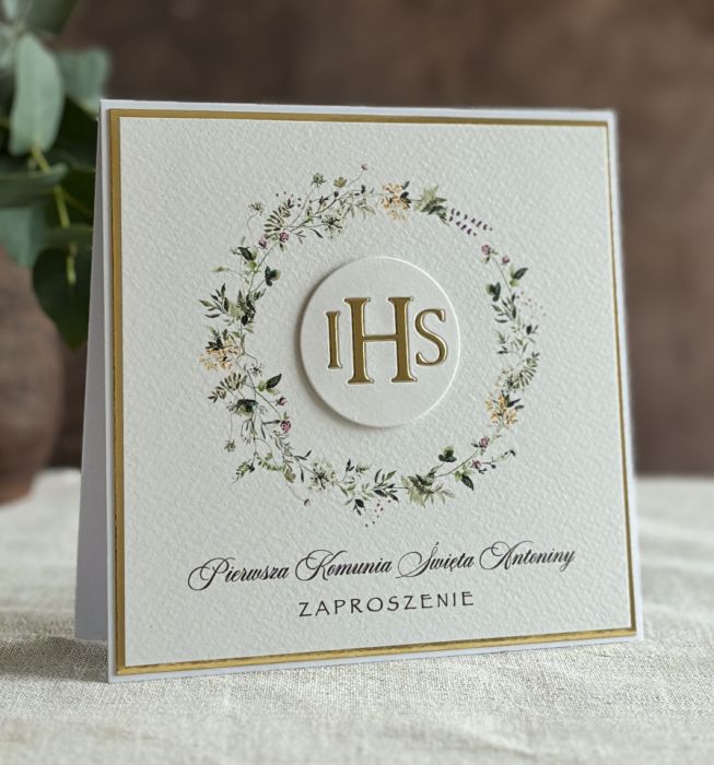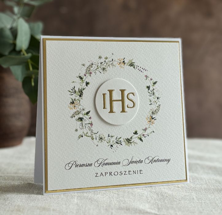 Eleganckie, ręcznie robione, personalizowane zaproszenia komunijne.