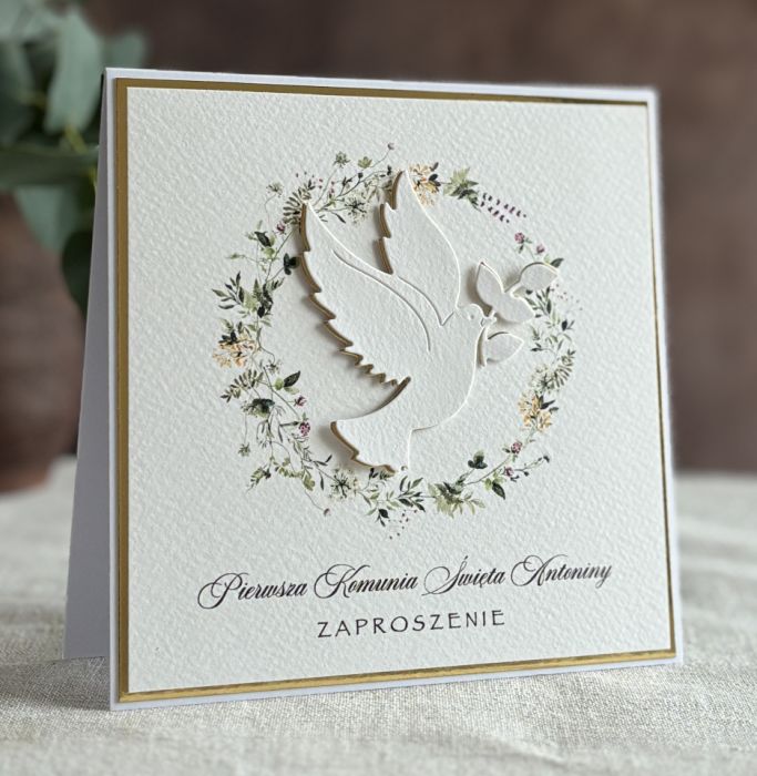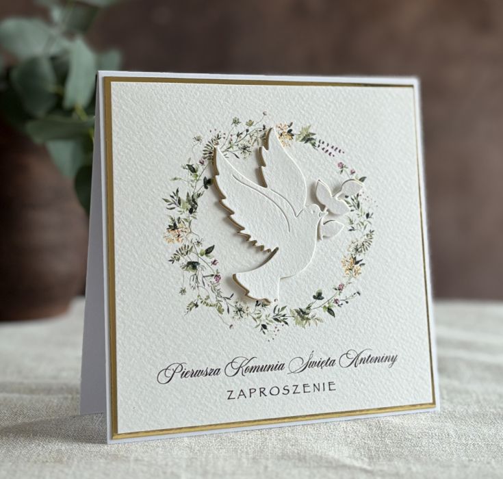 Eleganckie, ręcznie robione, personalizowane zaproszenia komunijne.