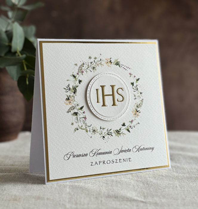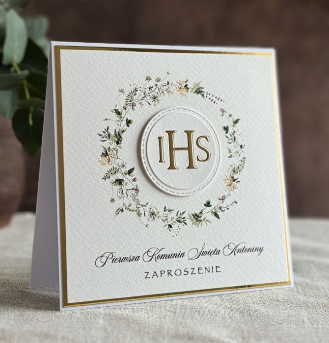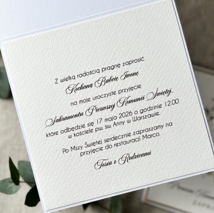 Eleganckie, ręcznie robione, personalizowane zaproszenia komunijne.