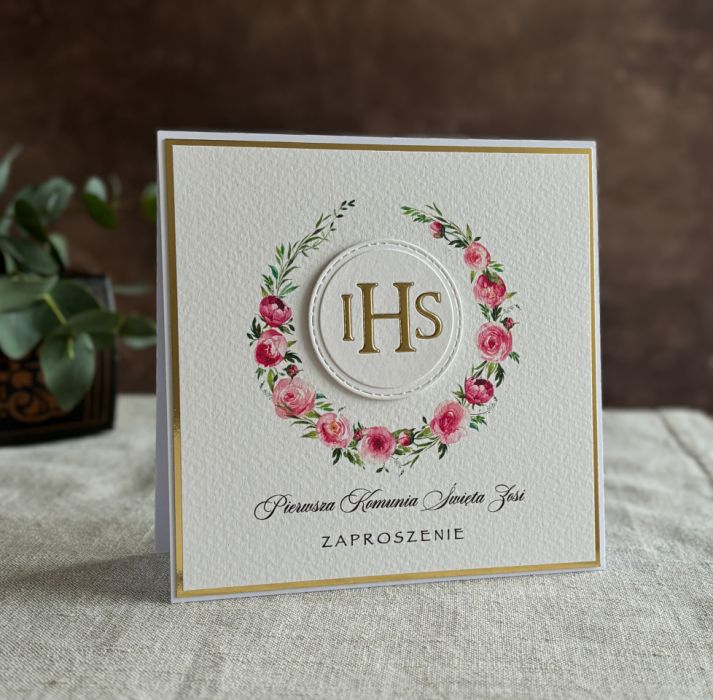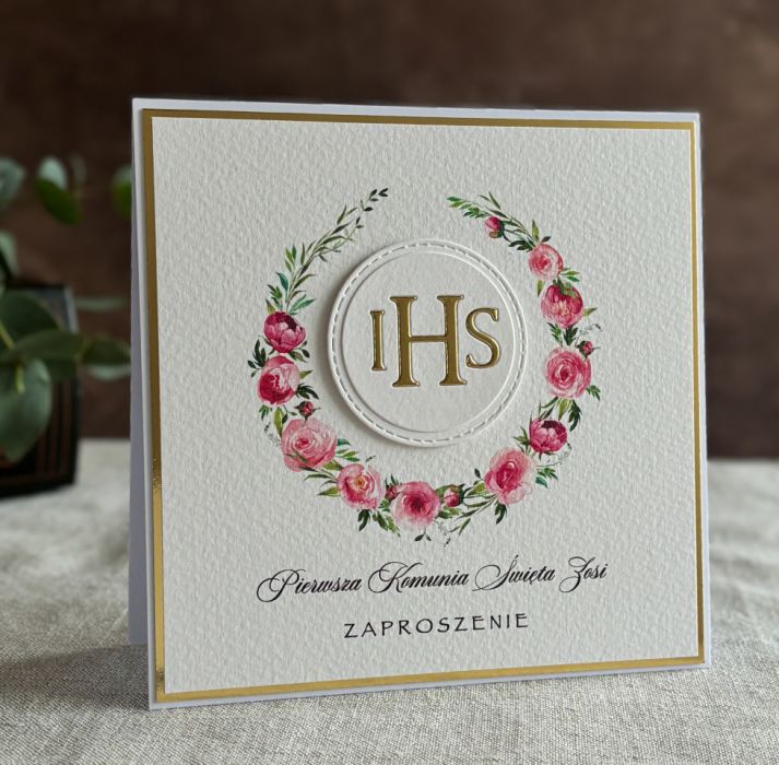 Eleganckie, ręcznie robione, personalizowane zaproszenia komunijne.