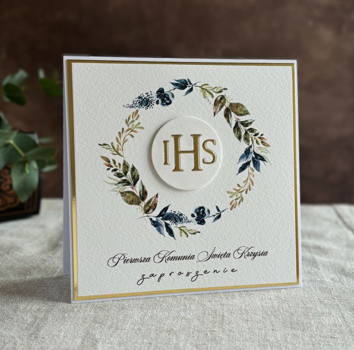 Eleganckie, ręcznie robione, personalizowane zaproszenia komunijne.