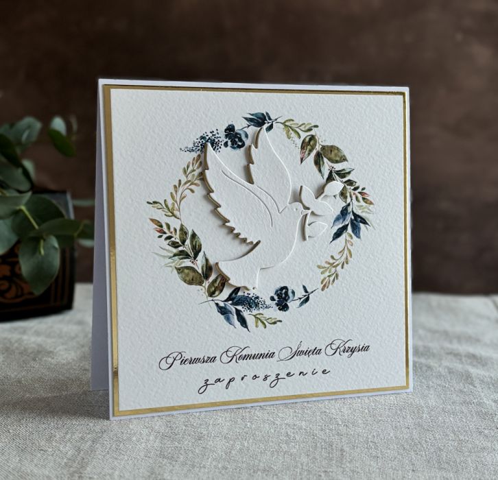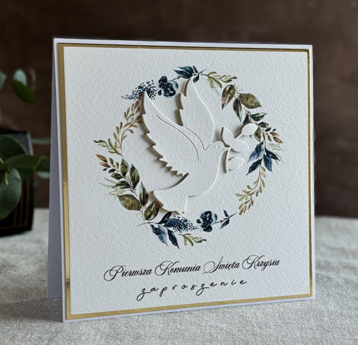 Eleganckie, ręcznie robione, personalizowane zaproszenia komunijne.