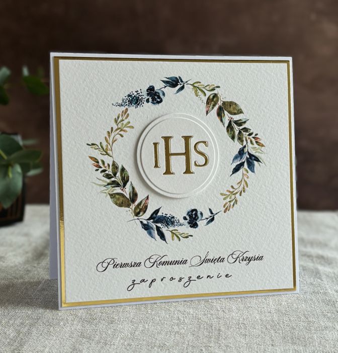 Eleganckie, ręcznie robione, personalizowane zaproszenia komunijne.