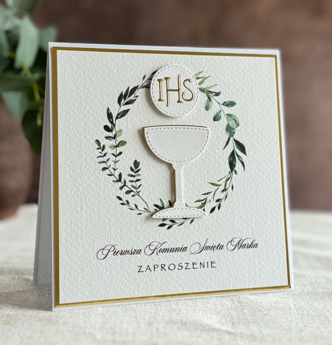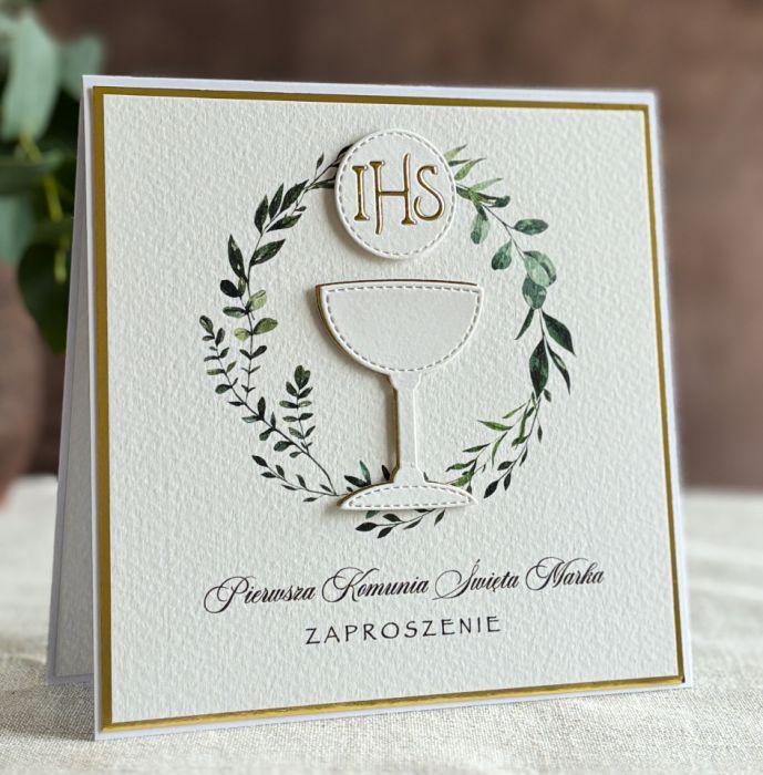 Eleganckie, ręcznie robione, personalizowane zaproszenia komunijne.