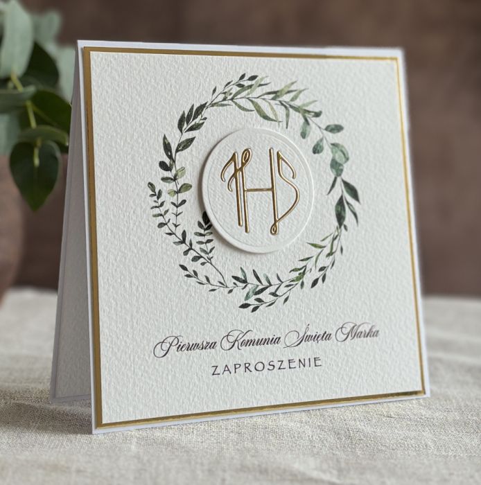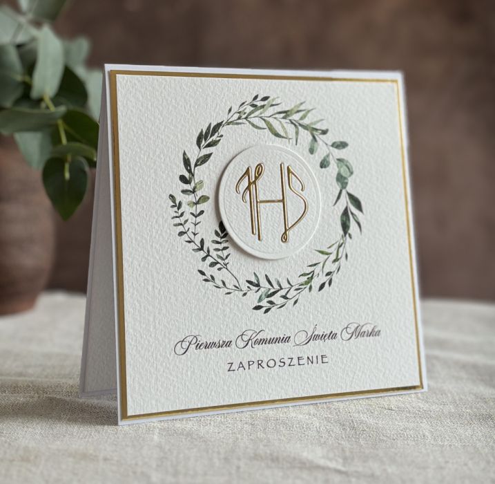 Eleganckie, ręcznie robione, personalizowane zaproszenia komunijne.