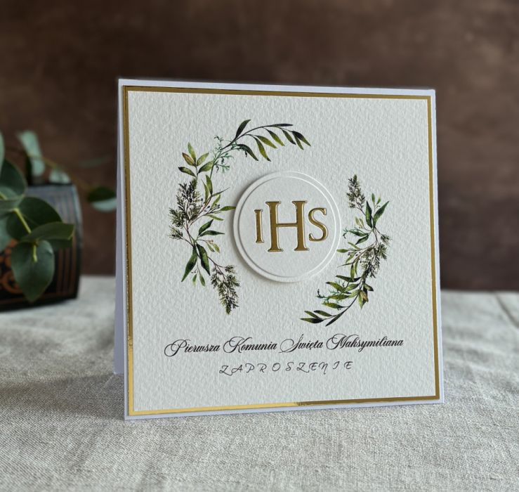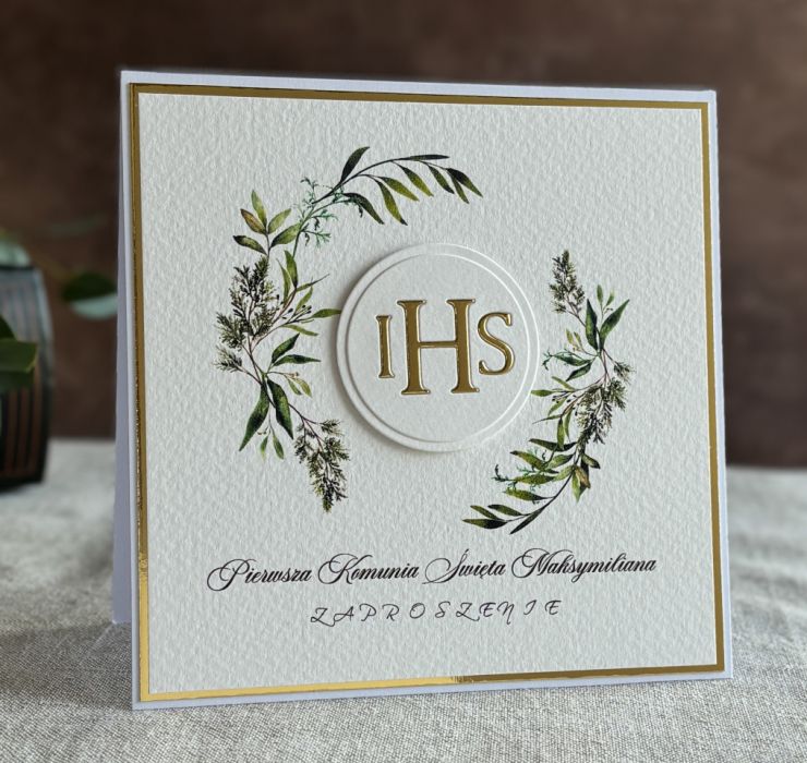 Eleganckie, ręcznie robione, personalizowane zaproszenia komunijne.