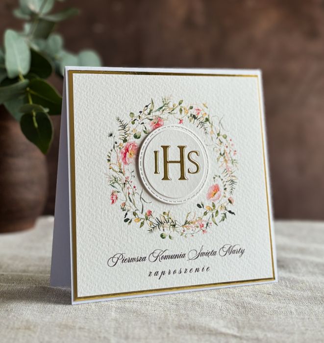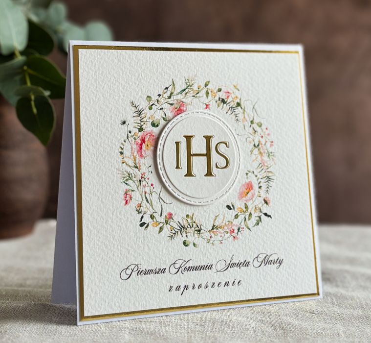 Eleganckie, ręcznie robione, personalizowane zaproszenia komunijne.