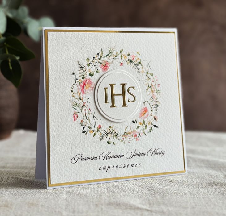 Eleganckie, ręcznie robione, personalizowane zaproszenia komunijne.