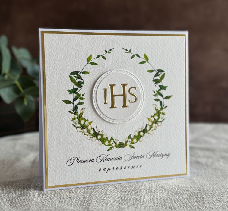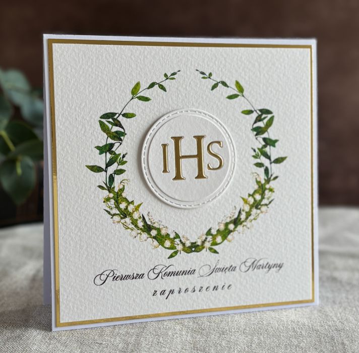 Eleganckie, ręcznie robione, personalizowane zaproszenia komunijne.