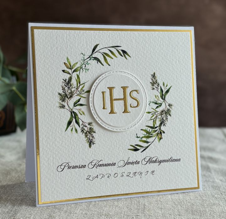 Eleganckie, ręcznie robione, personalizowane zaproszenia komunijne.