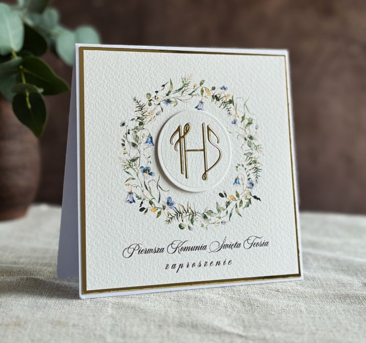 Eleganckie, ręcznie robione, personalizowane zaproszenia komunijne.
