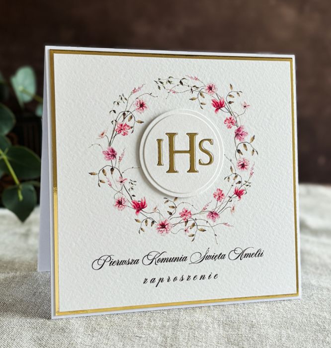 Eleganckie, ręcznie robione, personalizowane zaproszenia komunijne.