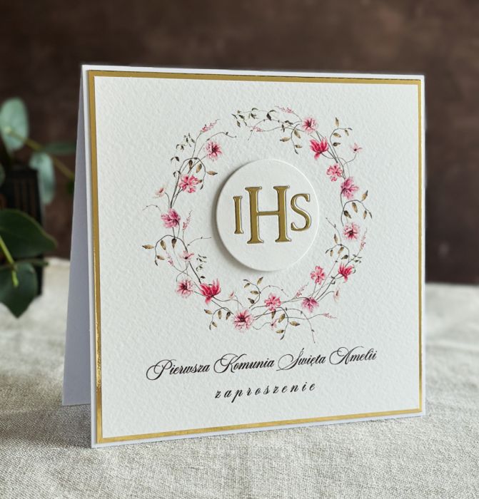 Eleganckie, ręcznie robione, personalizowane zaproszenia komunijne.