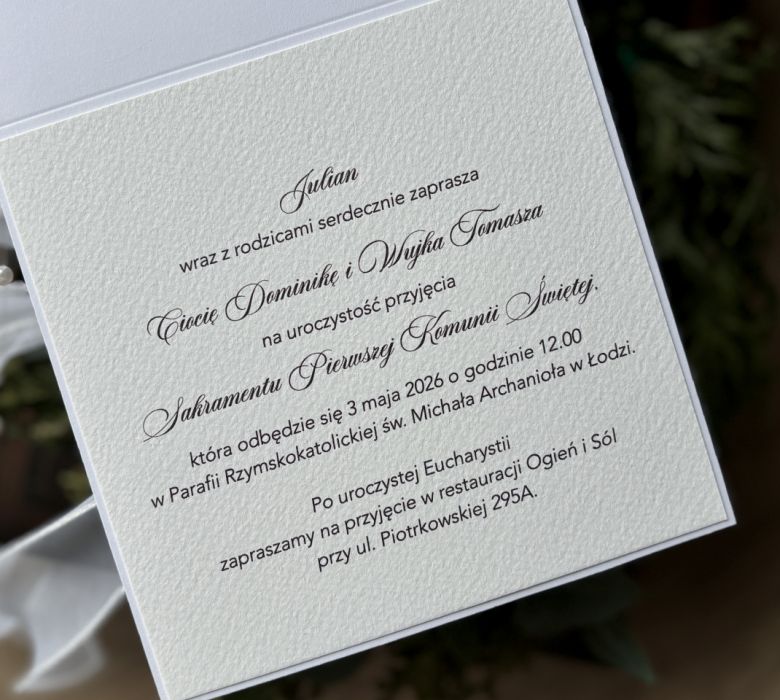 Eleganckie, ręcznie robione, personalizowane zaproszenia komunijne.