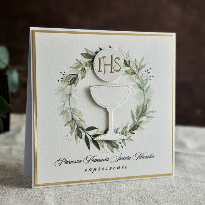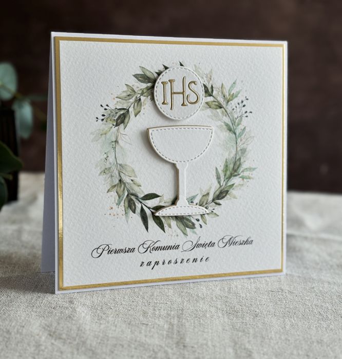 Eleganckie, ręcznie robione, personalizowane zaproszenia komunijne.