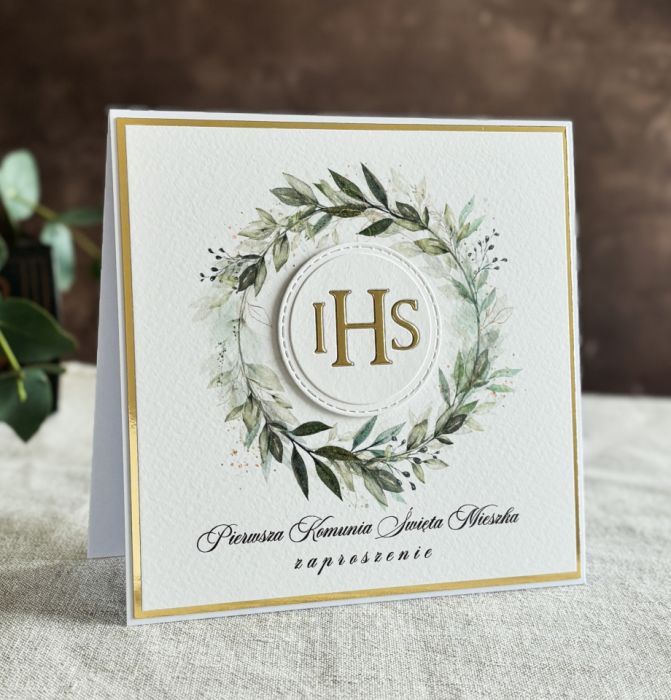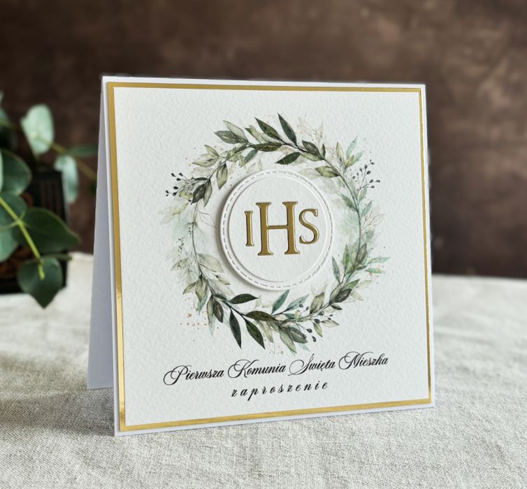 Eleganckie, ręcznie robione, personalizowane zaproszenia komunijne.
