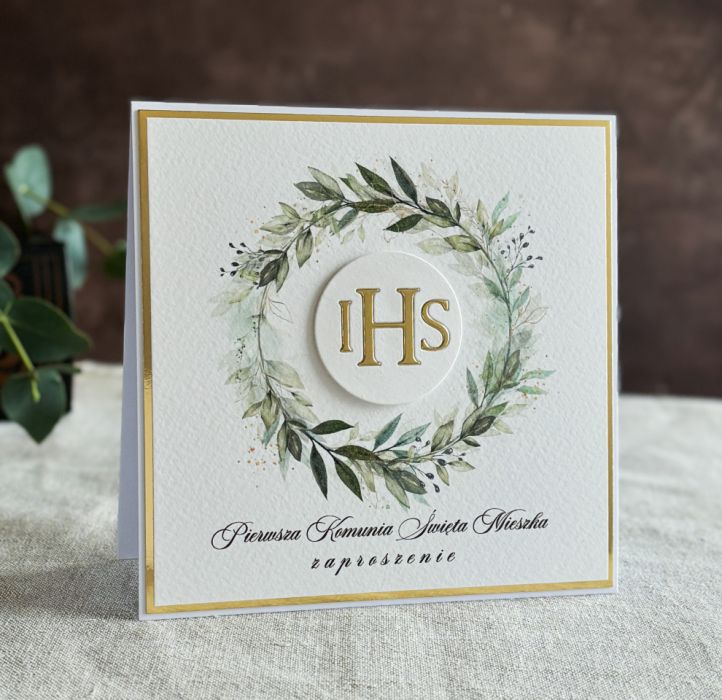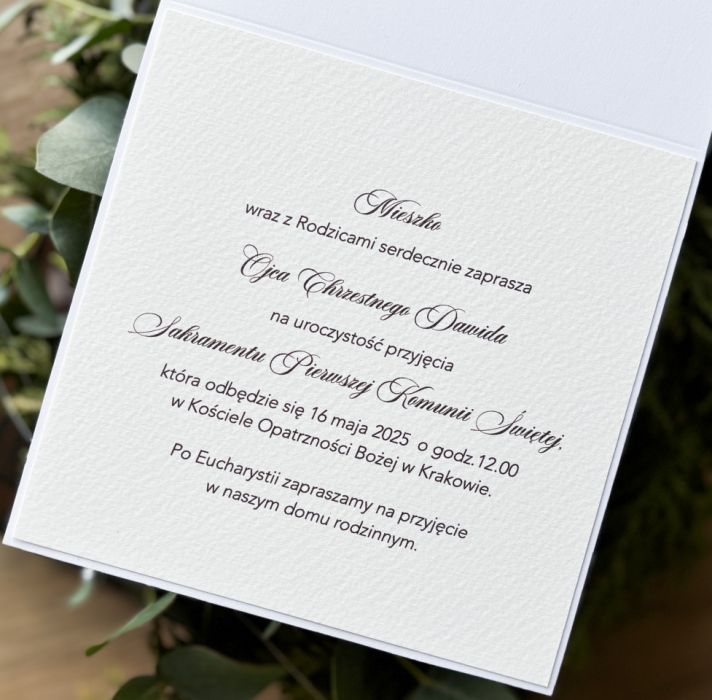 Eleganckie, ręcznie robione, personalizowane zaproszenia komunijne.