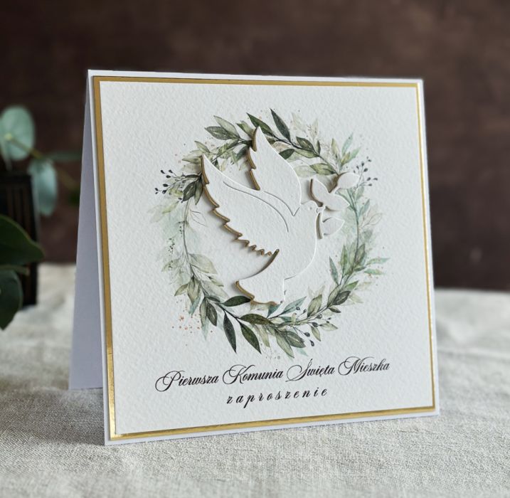 Eleganckie, ręcznie robione, personalizowane zaproszenia komunijne.