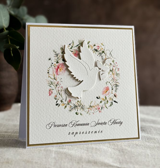 Eleganckie, ręcznie robione, personalizowane zaproszenia komunijne.