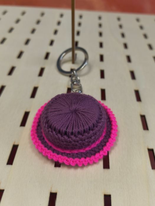 Oryginalny, ręcznie wykonany brelok w kształcie mini kapelusza. Wykonany na szydełku z dbałością o detale – idealny dodatek do kluczy, plecaka, torebki lub jako drobny prezent.