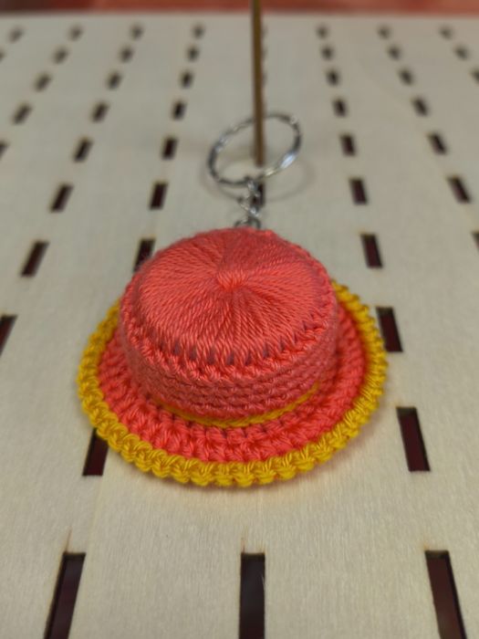 Oryginalny, ręcznie wykonany brelok w kształcie mini kapelusza. Wykonany na szydełku z dbałością o detale – idealny dodatek do kluczy, plecaka, torebki lub jako drobny prezent.