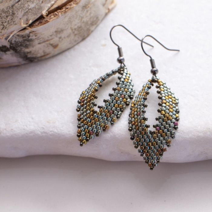 Wybierając 'Gaię', wybierasz precyzję i jakość na najwyższym poziomie. Każdy kolczyk jest ręcznie tkany z japońskich koralików MIYUKI, które słyną z idealnego kształtu i trwałości koloru. Otrzymujesz solidne, starannie wykończone rękodzieło. Metalowe bigle są wygodne i bezpieczne do codziennego noszenia. To pewna inwestycja w unikalny, rzemieślniczy dodatek.
