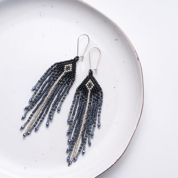 'Nyx' to biżuteria o głębokim, tajemniczym charakterze. Ciemne odcienie szarości i granatu kołyszą się z gracją, nadając Ci aurę intrygującej elegancji. Daj sobie prezent, który wzbudzi podziw i wyraź swoją indywidualność w subtelny, ale wyjątkowy sposób.