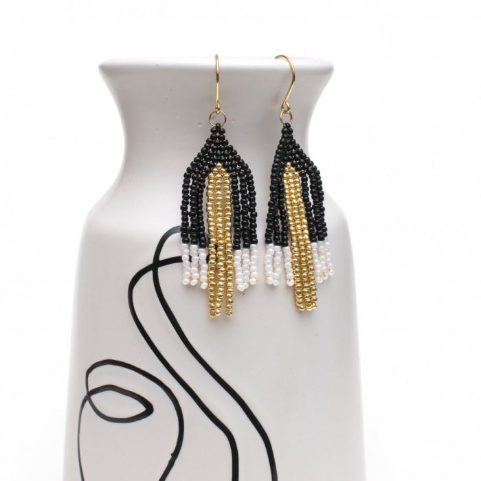 Ręcznie szyte kolczyki Totemic z najwyższej jakości japońskich koralików Toho to biżuteria, która łączy precyzję, elegancję i wyjątkową energię twórczej pracy. Każdy detal powstaje powoli, warstwa po warstwie, dzięki czemu otrzymujesz unikat, którego nie da się odtworzyć maszynowo. Złocone bigle ze stali szlachetnej dodają delikatnego blasku, a jednocześnie gwarantują trwałość i komfort noszenia nawet dla wrażliwej skóry.